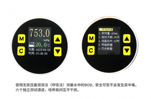 濃度直讀:可以測量1-6個樣品無需換算、直接顯示BOD濃度值。