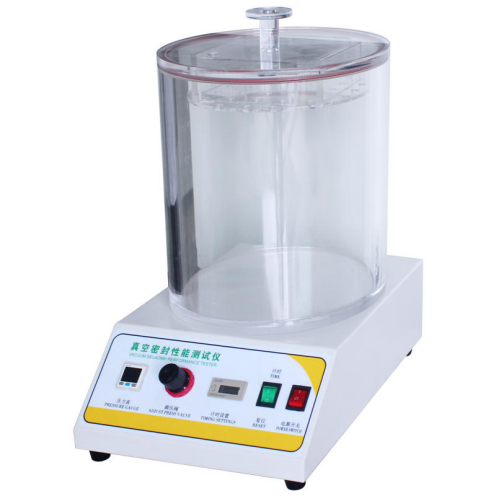 通過對(duì)真空室抽真空,使浸在水中的試樣產(chǎn)生內(nèi)外壓差,觀測試樣內(nèi)氣體外逸情況,以此判定試樣的密封性能;通過對(duì)真空室抽真空,使試樣產(chǎn)生內(nèi)外壓差,觀測試樣膨脹及釋放真空后試樣形狀恢復(fù)情況,以此判定試樣的密封性能。